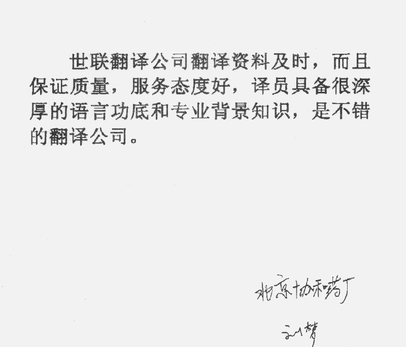 北京協和藥廠反饋--北京世聯翻譯公司怎么樣?